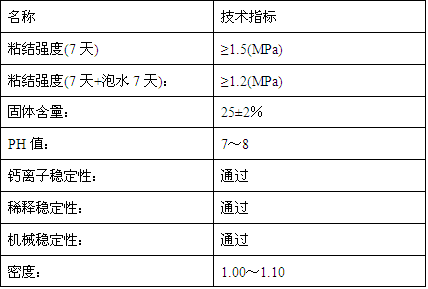 該界面劑是由聚合物乳液與多種助劑配制而成的一種新型水泥與混凝土界面修補(bǔ)材料,與水泥、砂等配合使用。既具有聚合物粘結(jié)力強(qiáng)、抗拉、抗彎強(qiáng)度高、抗?jié)B性好等性能,又有水泥能在水或潮濕環(huán)境中硬化、硬化收縮小的優(yōu)點(diǎn)。
